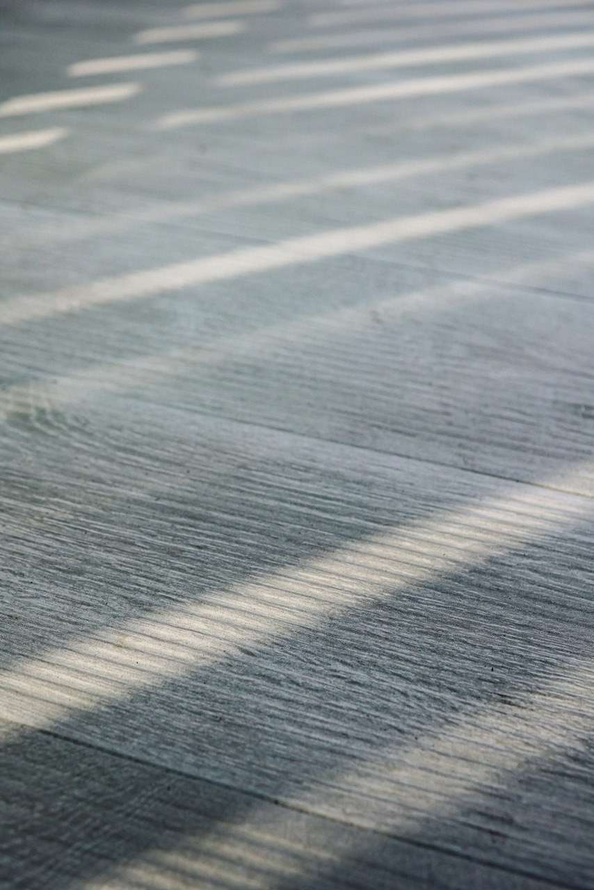 Для оформления террасы использован керамогранит фабрики Jano Tiles, коллекция Montain. Формат «под доску» с выразительной древесной текстурой в холодном серо-натуральном оттенке подчеркивает природный характер локации и мягко перекликается с окружающим ландшафтом. Поверхность материала практична для зон у воды: устойчива к влаге, перепадам температуры и активной эксплуатации.